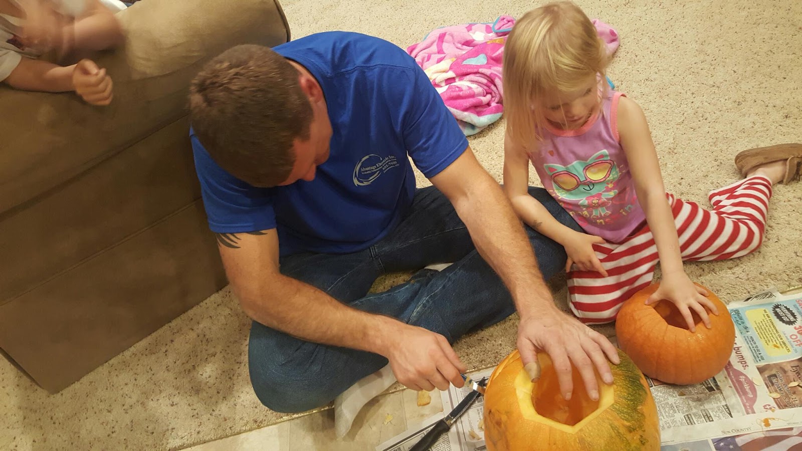 As always, Halloween was a great time this year! We carved pumpkins, and everyone got nice and gooey from the guts. Kyler, as always, gave Dad a hard time with his intricate design (his is the mummy). And we made cinnamon sugar pumpkin seeds (Yum!) We kicked off the weekend with the annual party at the Anne Carlson school. It's been a long time since we've been to their party, and we had a great time. The best part was the "haunted trail" where the kids got to fight off Star Wars guys with light sabers. The boys, Mom, and Grandma and Grandpa loved it. Etta, on the other hand, thought it was a bit too scary for her ;). On Halloween, I dressed up for work for the first time, well, ever. With my new job, it' fun to really get to get into all of the holidays! I was a scarecrow. The kids thought I looked weird ;). We then did some Trick-or-Treating at Edgewood, Granny's, and around the neighborhood. Once everyone got cold, we capped off the night with some Mexican food. Sounds like my kind of night!!